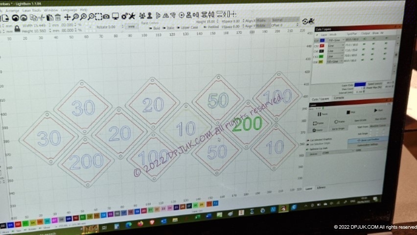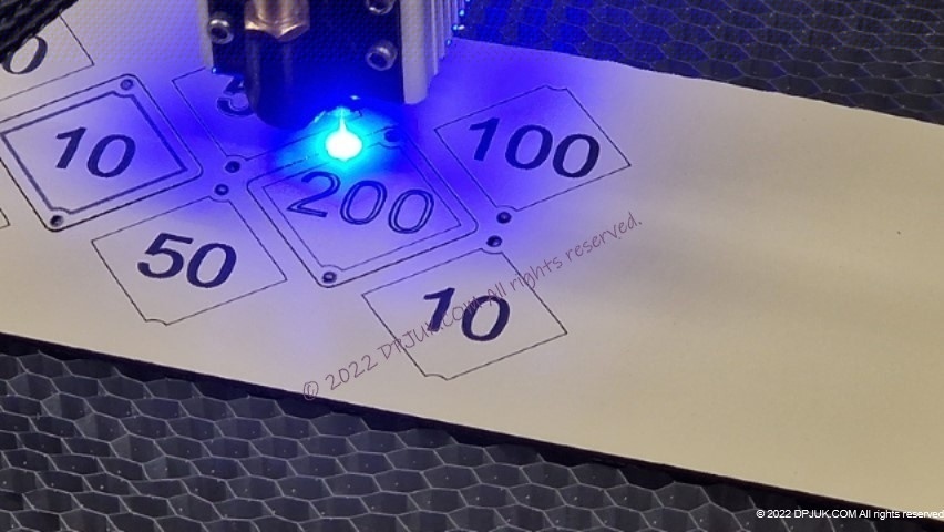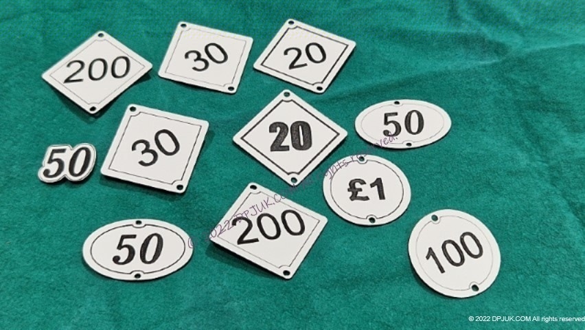 Laser engraved on 0.8mm thick acrylic sheet. Vertually any shape, size, font or graphics can be engraved and cut.