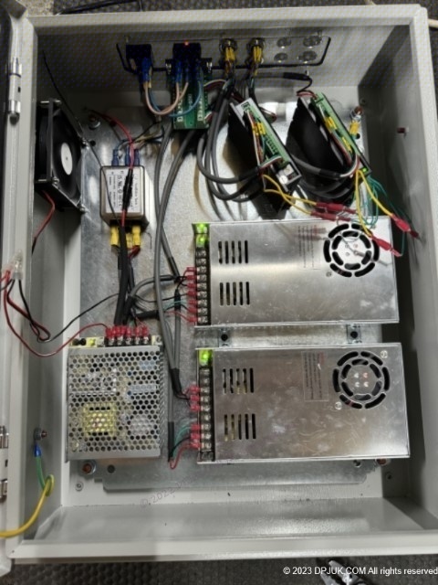 Electronics cabinet with drives and power supplies installed.