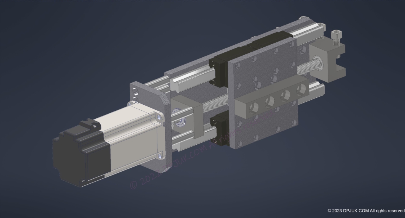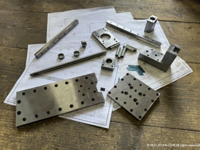 I started by modeling the whole assembly in 3D CAD, and produced production drawings. The design is done to minimise the machining required and using standard stock size materials as much as possible.