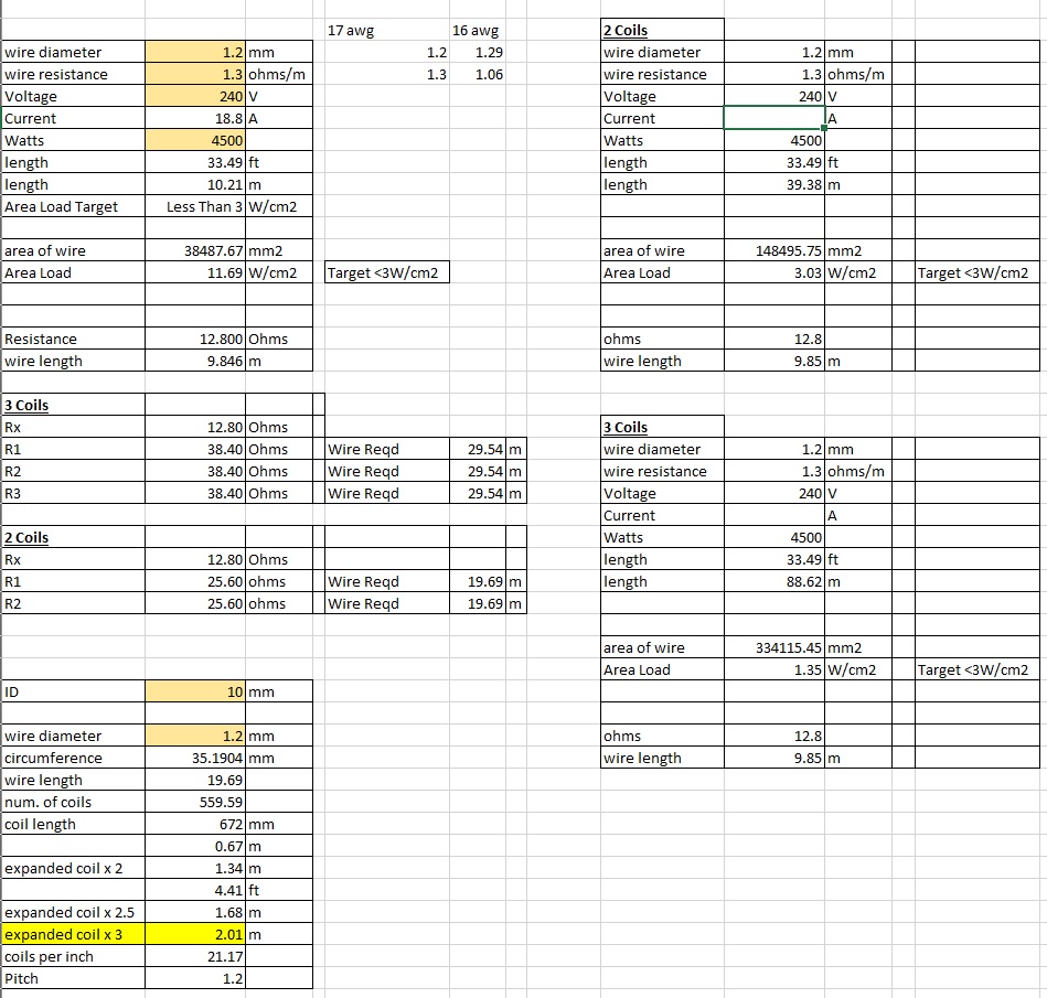 I spent a lot of time investigating the correct coil dimensions and power ratings. Luckily there are plenty of others that have already documented the requirements although it does depend on what wire you can buy and the power supply you have.