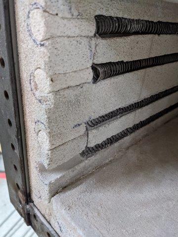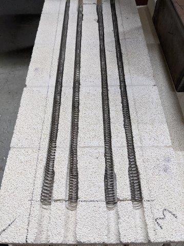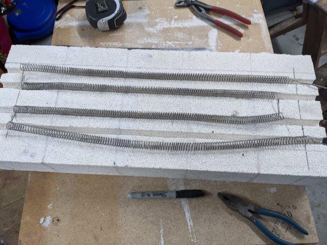 After working through the numbers I ended up with 2 coils wrapped around a 10mm diameter rod. Each coil was stretched to 2m so I could get the 4 rows needed each side of the oven.